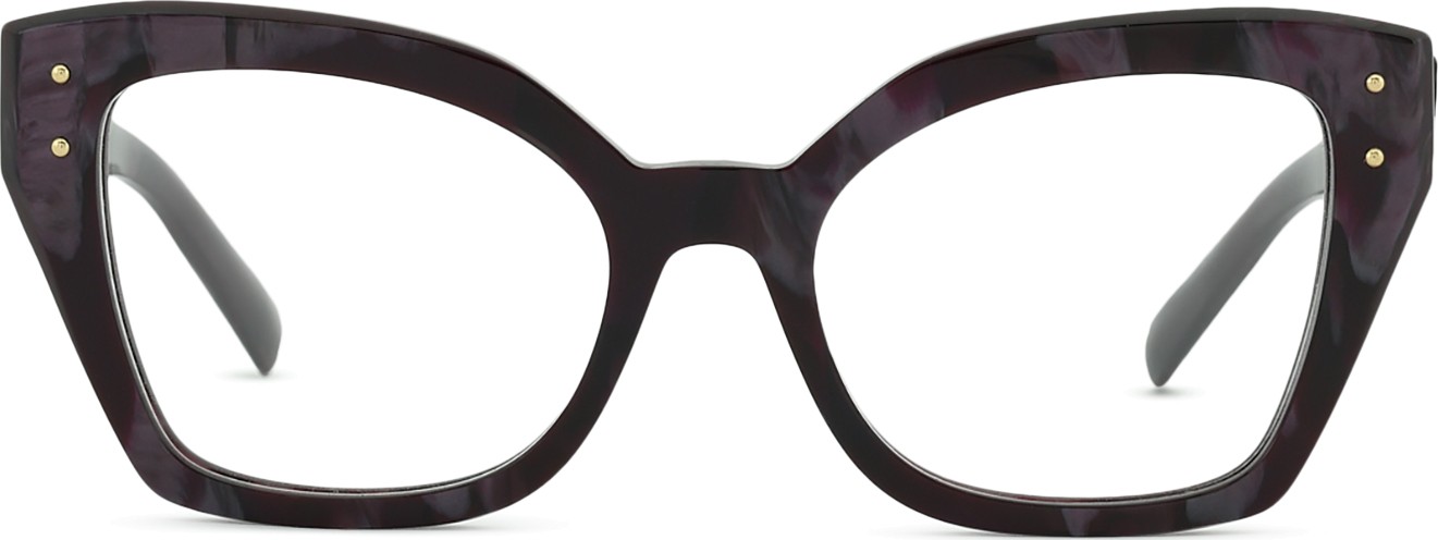 - Den lila färgen på ramen passar perfekt till en kall hudton och svart, grått, vitt eller ljusblont hår.