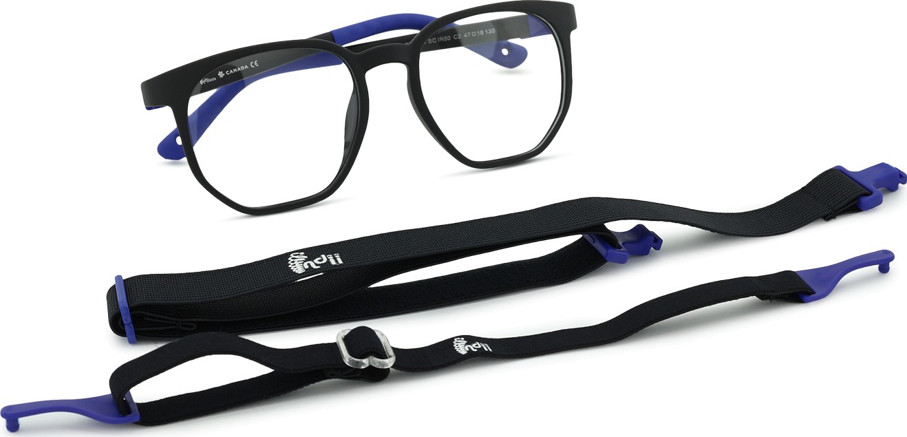 Indii Kids IN har två justerbara textilremmar som minskar risken för att glasögonen tappas bort samt ger ett bättre fäste på huvudet under olika barnaktiviteter.