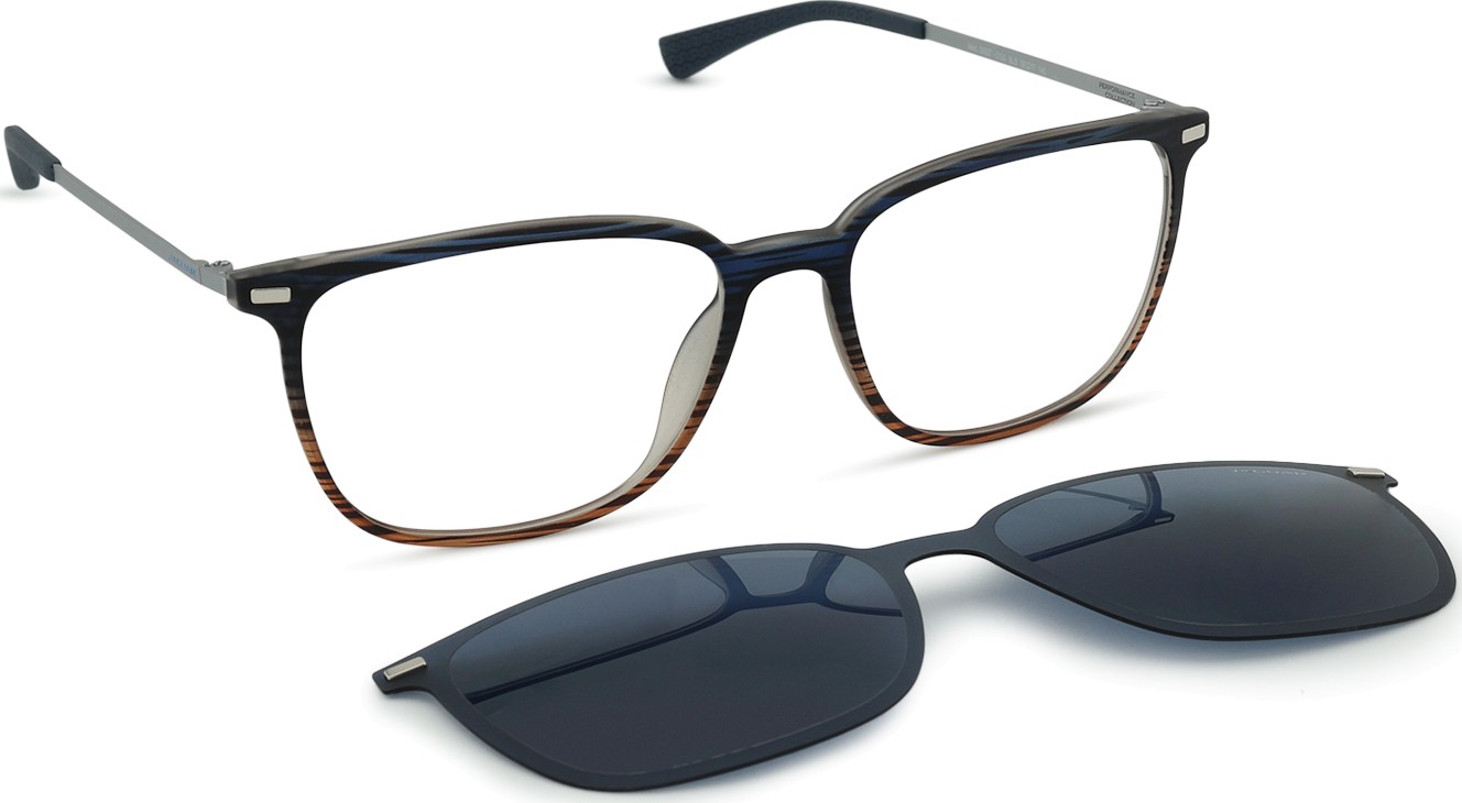 - Glasögonen har också en extra solklämma som enkelt fästs på glasögonens båge och förvandlar dem till solglasögon. Klämman följer perfekt bågens form och monteringen är mycket snabb och enkel. Om du har högre plusdioptrier är det dock nödvändigt att välja en tunnare version av linserna så att klämman inte rör linsernas främre sfäriska yta och passar ordentligt på bågen.