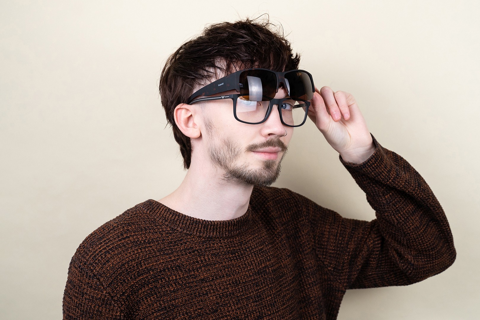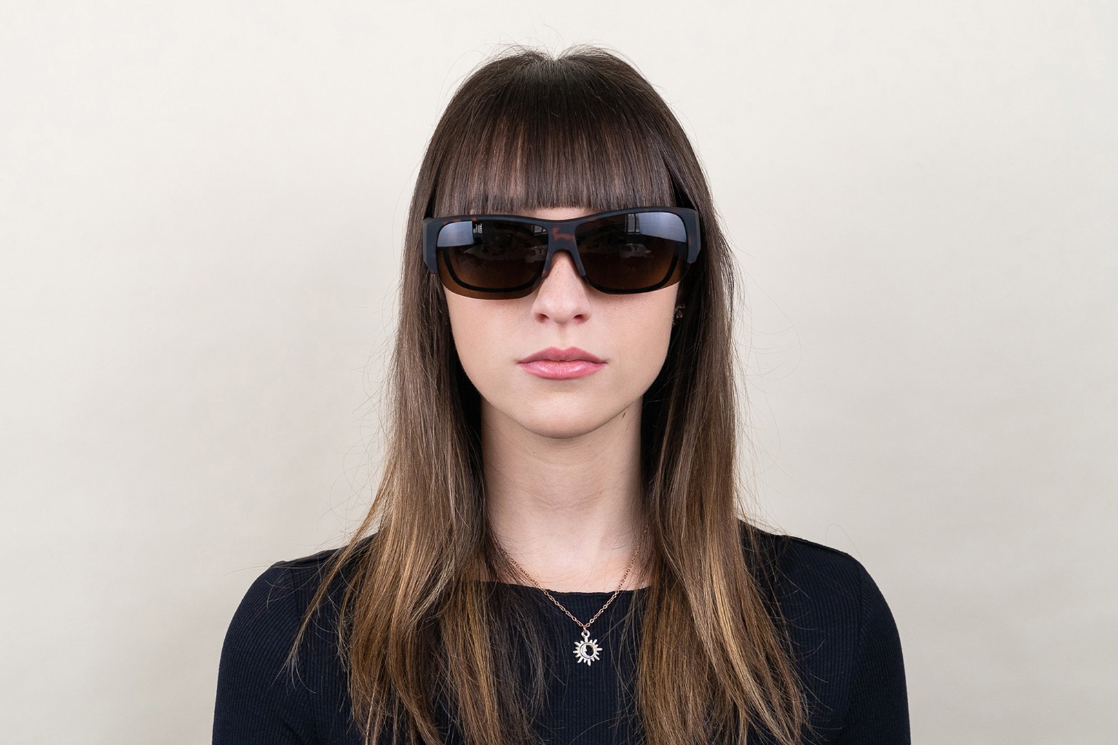 • Suncover-solglasögonens skalmar och bågar, även kallade fit-over glasögon, har en speciell utformning som gör att de kan fästas på många typer av receptbelagda glasögon. Du kommer inte att kunna se skillnad från andra vanliga solglasögon och de receptbelagda glasögonen kommer lätt att döljas bakom dem. Du behöver inte längre välja mellan receptbelagda glasögon och solglasögon på soliga dagar - du kan bära båda samtidigt och samtidigt skydda dina ögon från solljuset utan att behöva ge avkall på synskärpan. Du kommer att uppskatta Suncover-solglasögonen i alla situationer, oavsett om du kör bil eller motorcykel, tar en promenad eller tillbringar dagen på stranden.